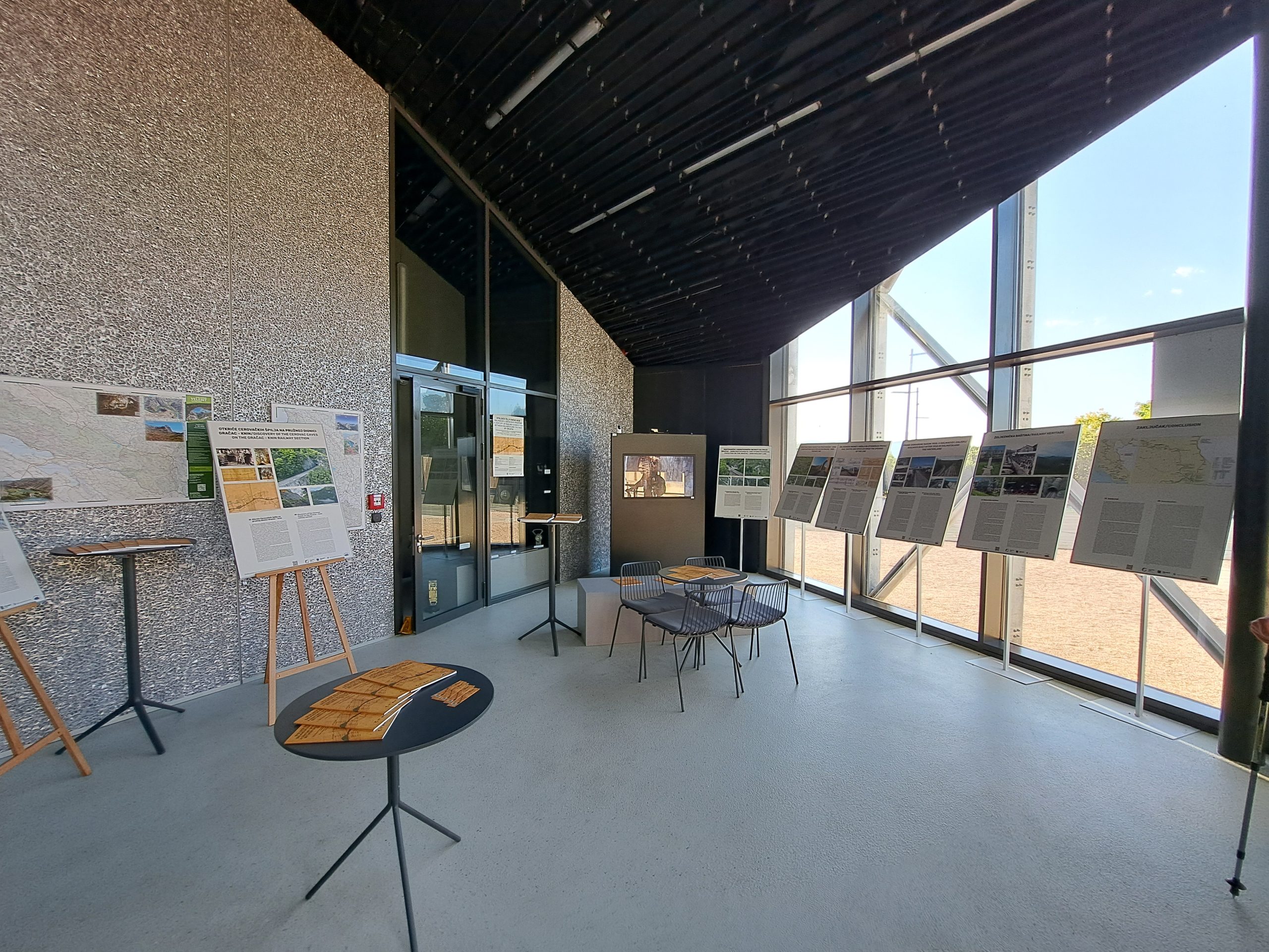 Izložba je simbolično postavljena u Centru za posjetitelje Cerovačke špilje Parka prirode Velebit, kod najvećega špiljskog sustava u Hrvatskoj, koji je tijekom radova na pripremi gradnje pruge otkrio glavni inženjer Nikola Turkalj. Time se na uistinu poseban način ističe željeznicu, ekološki najprihvatljiviji oblik prijevoza, kao primjer vrste prometa iznimno dobro uklopljene u krajobraz, što je očigledno i s obzirom na to da više od 40 km pruge kroz Liku prolazi kroz zaštićeno područje Parka prirode Velebit, što je iznimna vrijednost i potencijal.