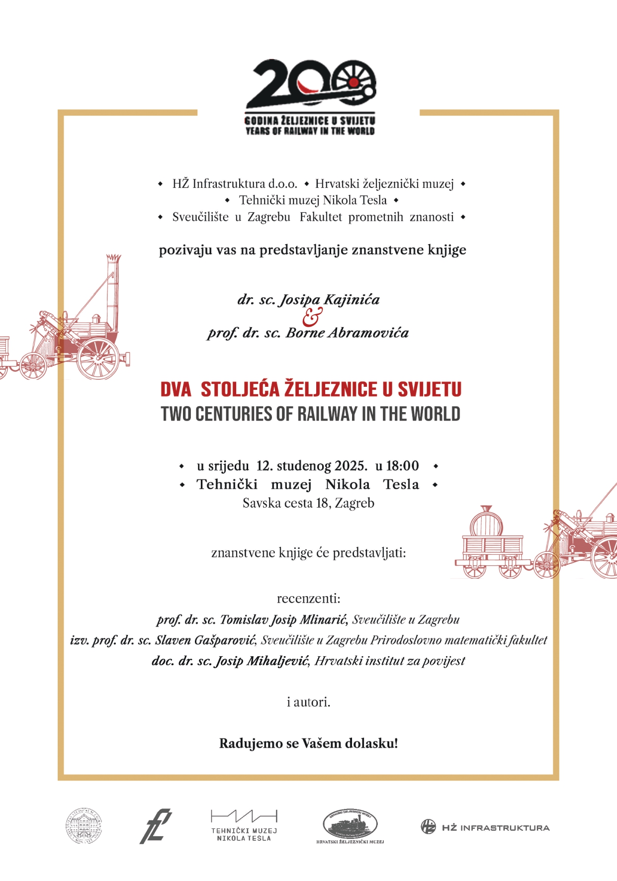 Izložba, znanstveni skup i predstavljanje knjige događanja su kojima HŽ Infrastruktura d.o.o. Hrvatski željeznički muzej, Tehnički muzej „Nikola Tesla“ i Sveučilište u Zagrebu Fakultet prometnih znanosti obilježavaju dvjestoti rođendan željeznice.